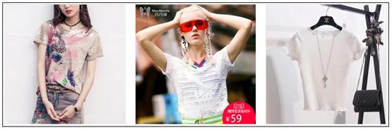 我们搜索一下“毛呢大衣 女”、在搜索一下“T恤 女”:
